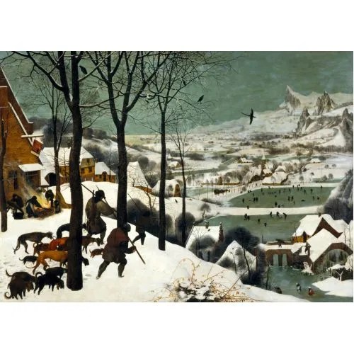 In Breugel’s painting The Hunters in the Snow, can see that the hunters are carrying a rabbit, a rather meager catch, which gives us the impression of the stresses they must endure. Since it is winter, this might be the only food they can provide for their families. Harris also says: “You can see the footprints they are leaving in the snow. There is this real sense of trudging through this deep snowy landscape.” Dr. Zucker concludes: “In the foreground, there is that sense of melancholy as well. Their backs are turned to us. The pack of dogs that follow, their heads are down